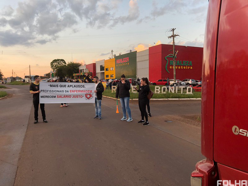Profissionais de saúde, técnicos de enfermagem e enfermeiros, de vários municípios da região estão concentrados no trevo de Seberi, na BR-386, que dá acesso aos municípios de Rodeio Bonito e Erval Seco.