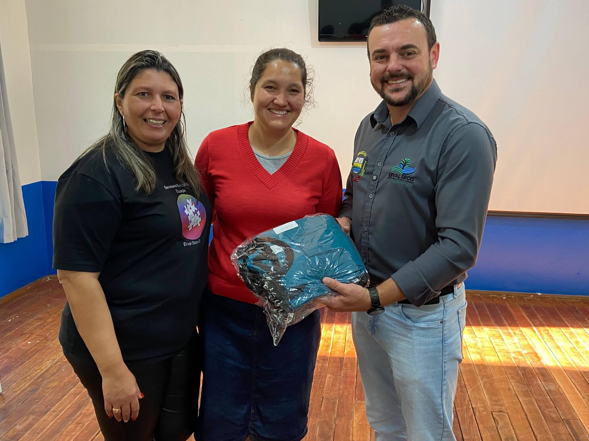 A Prefeitura de Erval Seco, por meio da Secretaria Municipal de Educação, iniciou na última semana a entrega dos novos uniformes escolares para todos os estudantes da Rede Municipal de Ensino. Ao todo, mais de 800 alunos das sete escolas do município, do berçário ao 9º ano, serão contemplados com o kit completo.