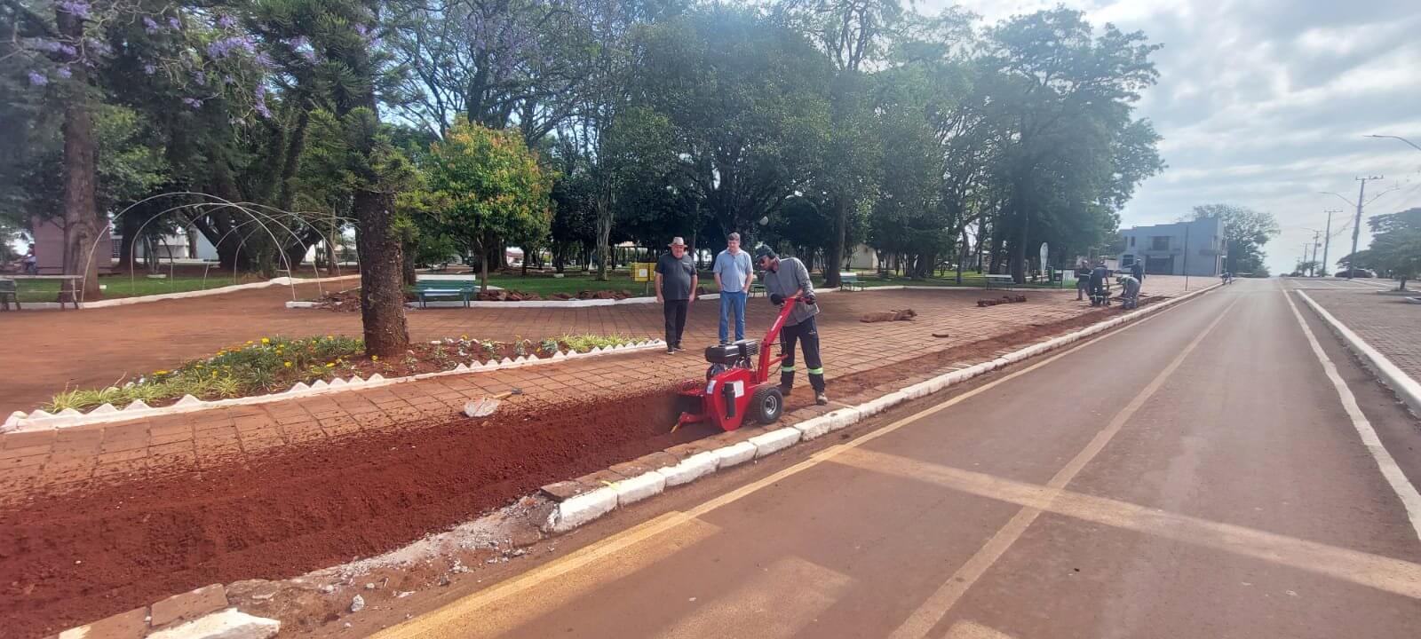Acompanhando o início dos trabalhos estiveram presentes o Prefeito em exercício Paulo Sérgio Gonzatto, o secretário de Planejamento Luciano André Schunemann e a engenheira civil Tanise Ferrari Agnoletto.