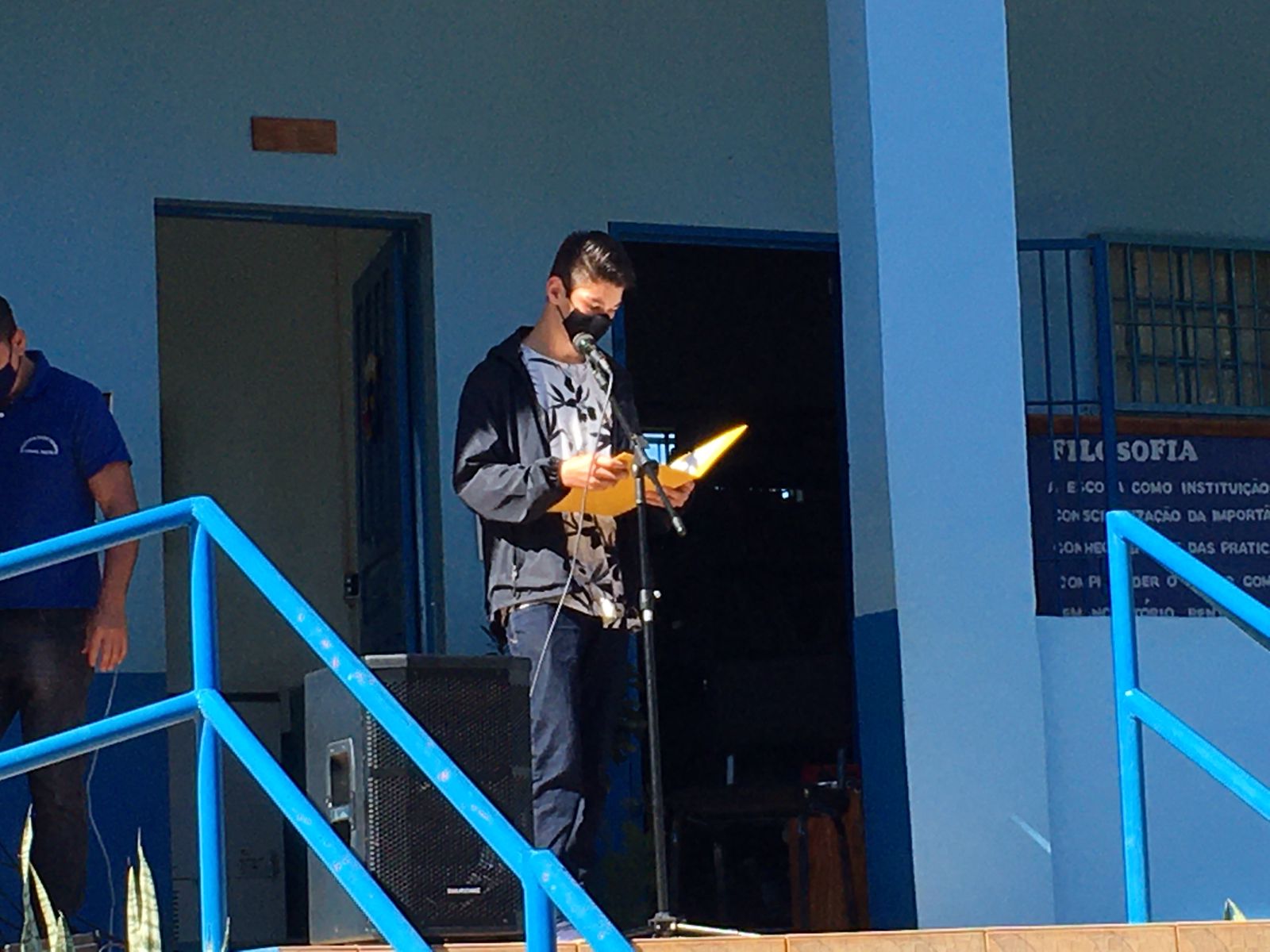 Além das apresentações artísticas dos alunos, o prefeito do município entregou para a diretora e alunos a obra do calçamento na chegada da escola. Conforme Leonir, o calçamento com pedras irregulares custou para a Administração Municipal aproximadamente R$ 8 mil, sendo um investimento para melhor trafegabilidade para toda comunidade escolar. A diretora do educandário, Carin Ahlert de Castro reforçou a parceria da escola com o município, por meio da Secretaria de Educação e com a Coordenadoria Regional de Educação. Carin agradeceu o empenho do prefeito e sua equipe na construção do calçamento logo na entrada da escola.