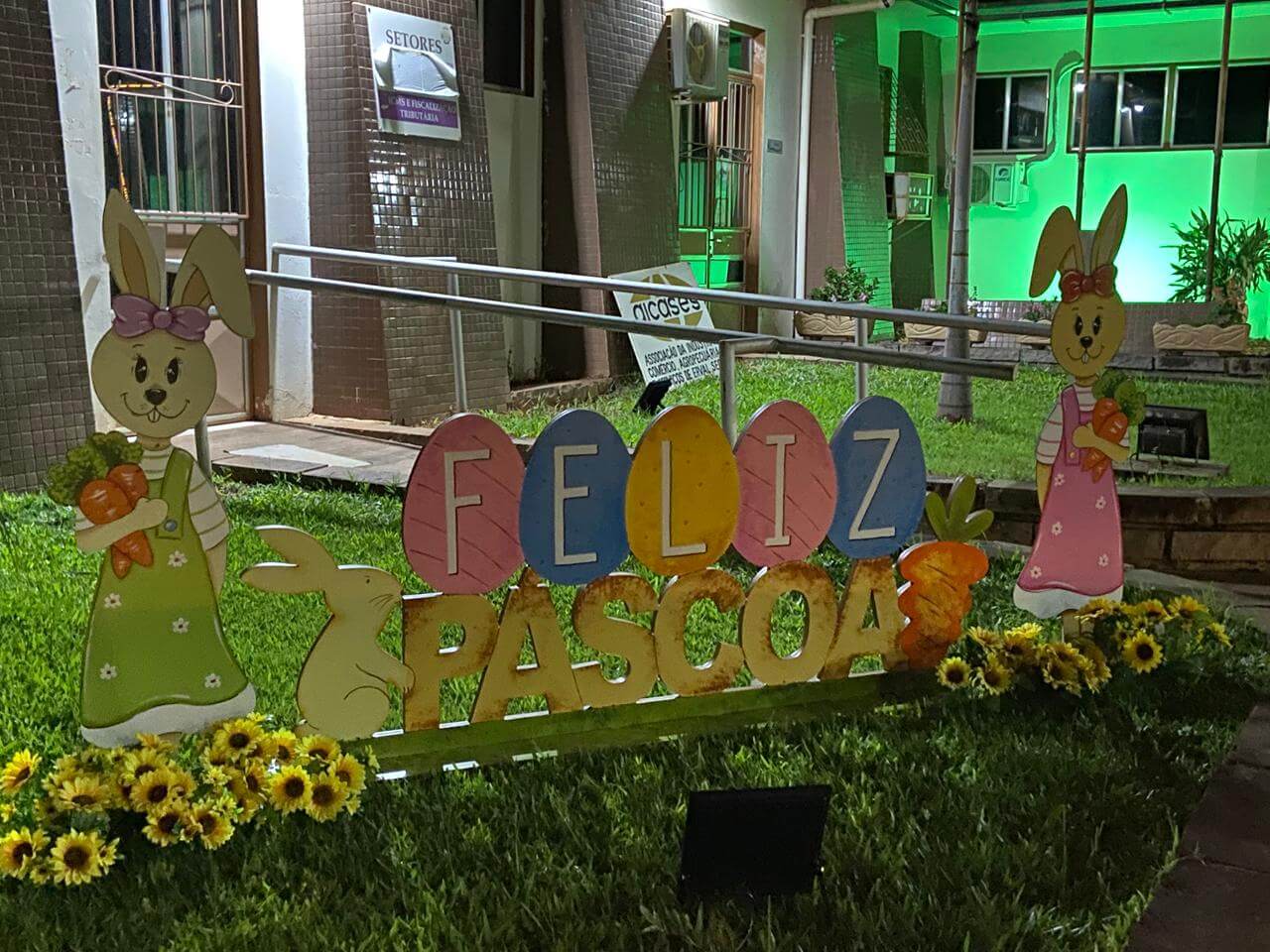 A ação foi coordenada pela primeira-dama Nicoly Magalhães que conduziu a iniciativa que trouxe luzes, cores e diversos enfeites alusivos à data. Coelhos, ovos decorativos e uma iluminação especial compõem o ambiente, criando um clima festivo que tem chamado a atenção de moradores e visitantes.