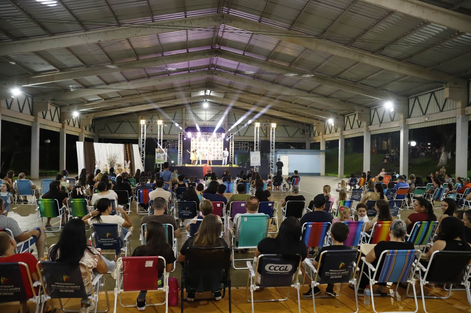 Na noite de segunda-feira, 30 de março, a Praça Municipal João Alberto de Oliveira foi palco de um momento especial de celebração em Dois Irmãos das Missões. O evento de Páscoa marcou o encerramento das atividades alusivas aos 34 anos de emancipação político-administrativa do município, reunindo um grande público de famílias e crianças.